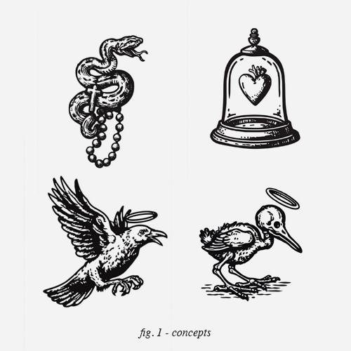 Define a visual direction rooted in the client’s character, guided by close listening and research into antique symbolism. Historic references are distilled, not copied, to create a form that feels intentional and current.